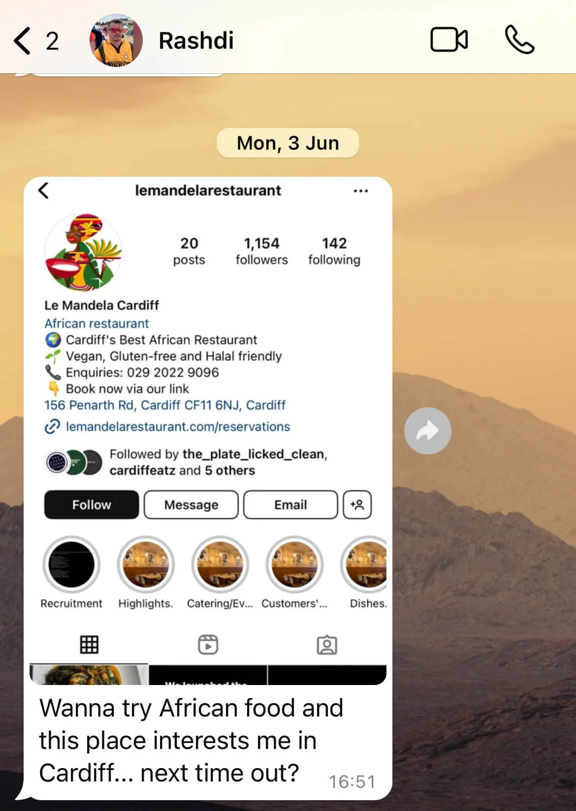 It’s important we have these types of restaurants in our city, else we end up solely with burgers, pizzas, and fish and chips - all of which have their place - but so do venues like Le Mandela.