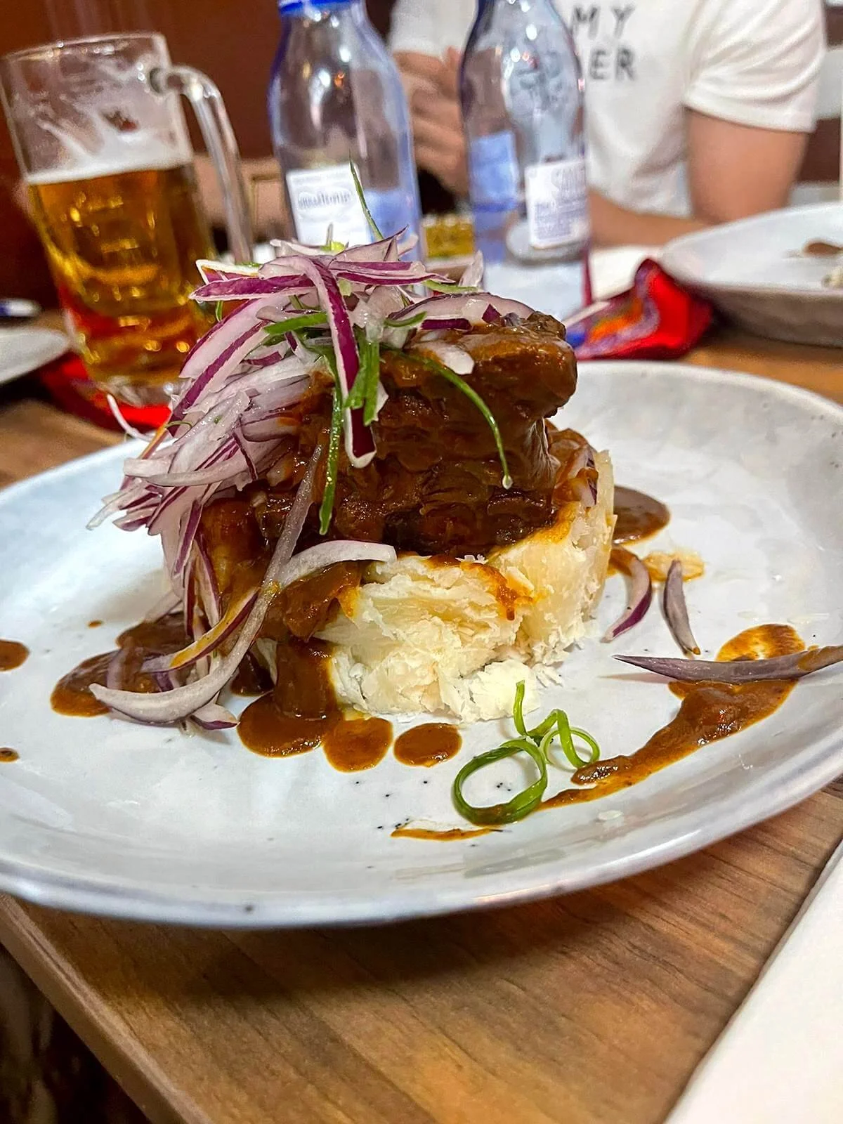 For a main course, I tried the Carrillera Veal (€17). Slow cooked veal on top of a bed of crushed cassava (a root vegetable). The veal was so tender that it melted in my mouth, and the earthy, sweet, nutty, slightly bitter cassava was reminiscent of a mashed potato on steroids.