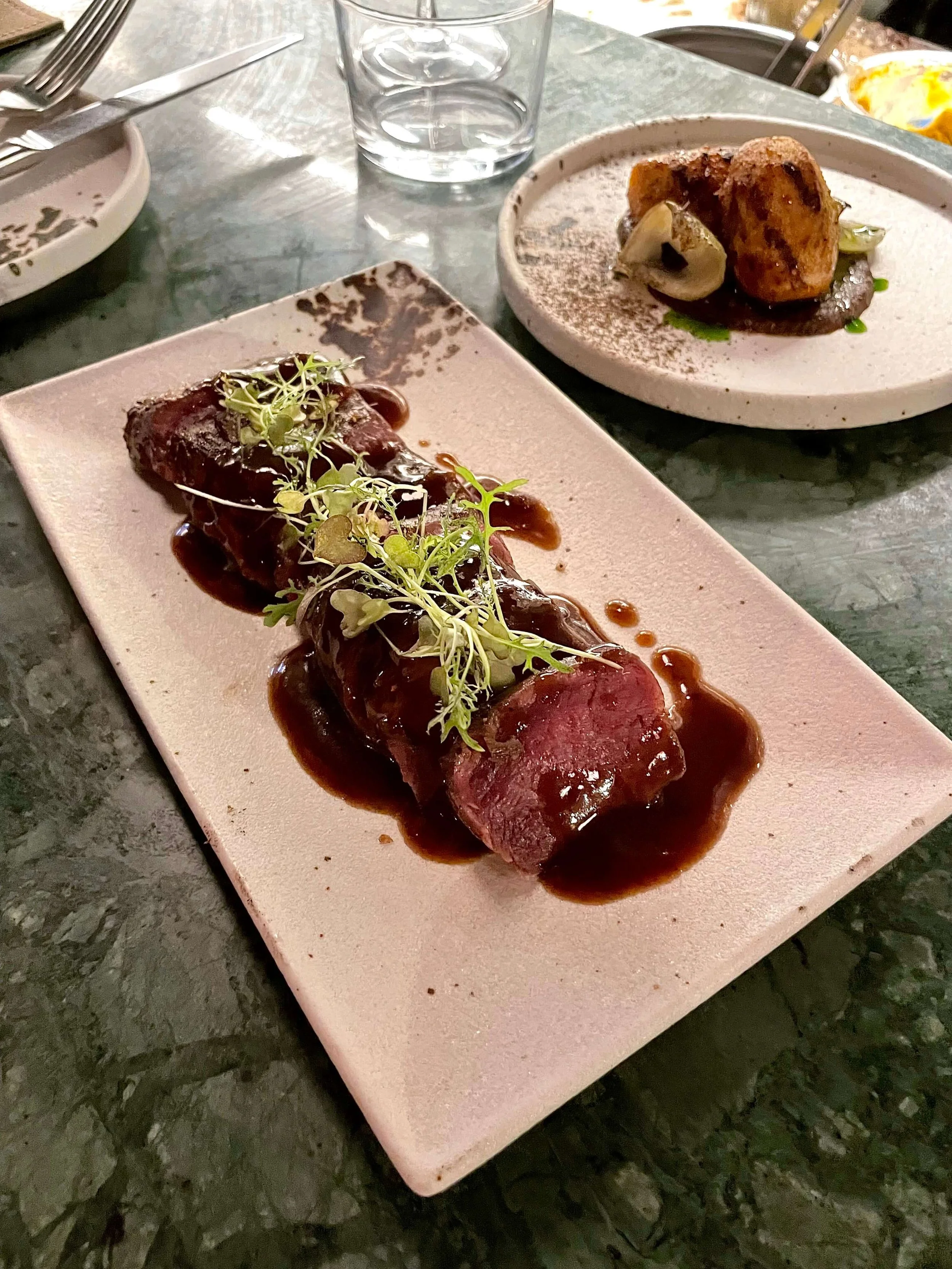 The leek croquettes have returned, or more likely they never left. The creaminess of them is cut through by that tangy fermented black garlic ketchup. The crispy leeks on top add a crunchy texture. This dish is a “homage to leeks” according to one of the chefs. It’s a pure delight, and my highlight of the entire menu. Quite remarkable when you consider some of the proteins I feasted on, but a testament to the brilliance of these croquettes.